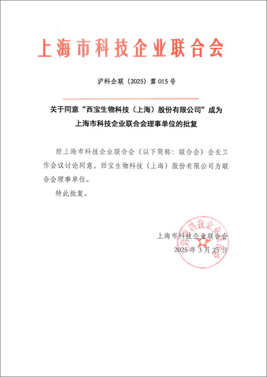 近日,西寶生物科技(上海)有限公司(以下簡稱“西寶生物”)喜訊連連。在上海市科學技術委員會的指導下,憑借持續(xù)創(chuàng)新能力,西寶生物順利通過國家高新技術企業(yè)重新認定,并正式成為上海市科技企業(yè)聯(lián)合會理事單位。兩項閃閃發(fā)光的成就展現(xiàn)了西寶生物在生物科技領域的創(chuàng)新實力與產(chǎn)業(yè)影響力,也為長三角生物經(jīng)濟創(chuàng)新生態(tài)建設注入了新活力。