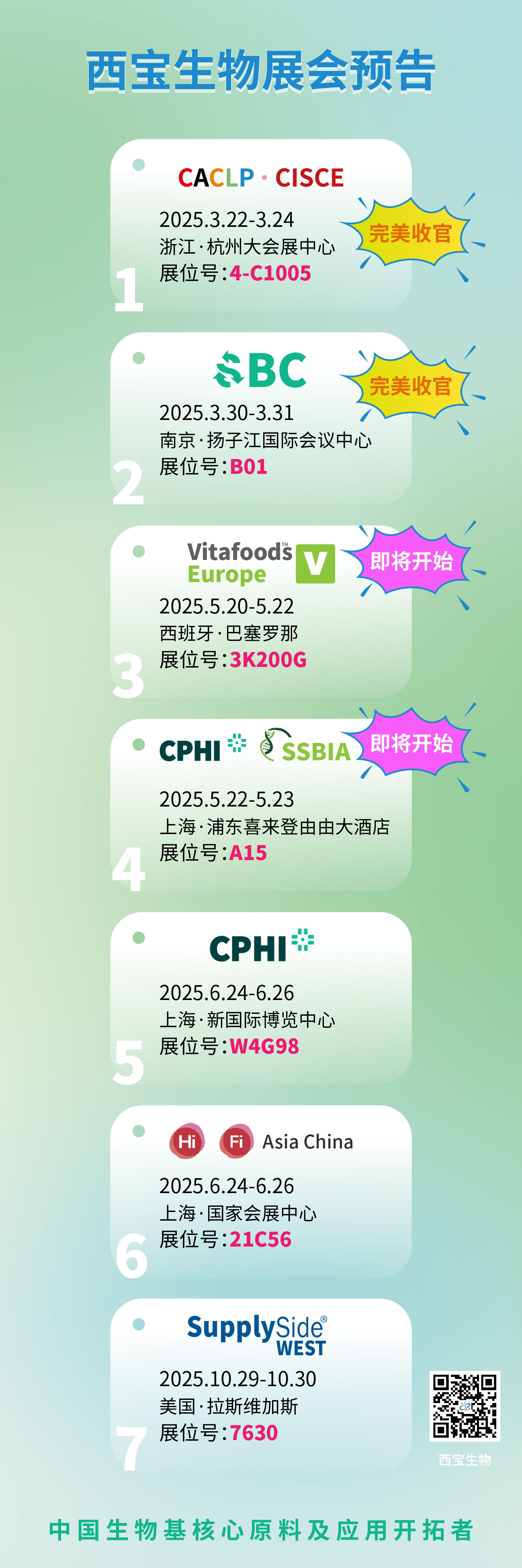 歷經(jīng)二十余載歲月沉淀,Vitafoods Europe早已蛻變成為歐洲乃至全球健康產(chǎn)品與功能食品領域的璀璨燈塔,是行業(yè)風向標的不二代表。如今,這場一年一度的行業(yè)盛會即將再度拉開帷幕,又到了我們熱切期盼相聚的時刻。西寶生物,作為Vitafoods Europe連續(xù)多年的參展常客,在此滿懷熱忱,向全球客戶發(fā)出誠摯的邀約,誠邀您共赴西班牙巴塞羅那這場行業(yè)盛事。西寶生物展位號為3K200G,我們已精心籌備,只等您的大駕光臨,一同開啟交流合作的精彩篇章。