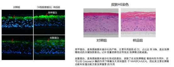 可促進(jìn)角質(zhì)層顯著增厚,增強(qiáng)皮膚屏障功能,促進(jìn)兜甲蛋白,絲聚蛋白的表達(dá)。