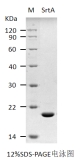 分選酶(Sortase)是一類由革蘭氏陽性菌(如金黃色葡萄球菌、鏈球菌等)分泌的轉肽酶,它們通過識別特定氨基酸序列,并催化其與細胞壁或細胞膜形成共價連接,從而在細菌的生理活動和致病機制中行使重要功能。本品為Sortase A(SrtA)的突變體,特異性識別LPXTG基序(X為任意氨基酸),切割蘇氨酸(T)和甘氨酸(G)之間的肽鍵,然后將切割后的蛋白羧基端與多聚甘氨酸(通常為GGGGG)受體橋連,完成錨定。本品經(jīng)突變優(yōu)化,與野生型分選酶A相比,催化活性提高50倍以上、Kcat/Km LPETG (M-1S-1)達2.0×103, Km GGG(μM)為4V103。與野生型分選酶A需高濃度酶(>30μM)或長時間反應才能達到有效偶聯(lián)相比,本品在低濃度底物條件下也能高效催化,大幅降低了對酶濃度和反應時間的依賴。