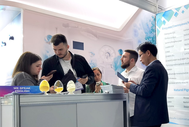 此次俄羅斯展會,西寶生物以飽滿昂揚的姿態(tài),攜多款優(yōu)勢產品前往,展現了企業(yè)的魅力風采,包括不限于:維生素、藥用輔料、日化及醫(yī)美原料、功能糖、天然色素、植物提取物、層析介質、酶、輔酶、核苷酸等系列產品。在展會現場的的西寶優(yōu)秀團隊為我們帶回了俄羅斯美景及現場盛況的直播畫面。我們堅信,為期4天的展會將加快西寶海外市場的拓展步伐,期待您與我們共同探索!
