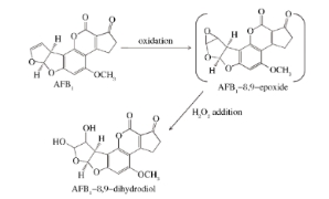 作用于黃曲霉毒素B1毒性結(jié)構(gòu)的雙呋喃8,9烯醚鍵,將黃曲霉毒素B1氧化后分解轉(zhuǎn)化成無毒物質(zhì)。