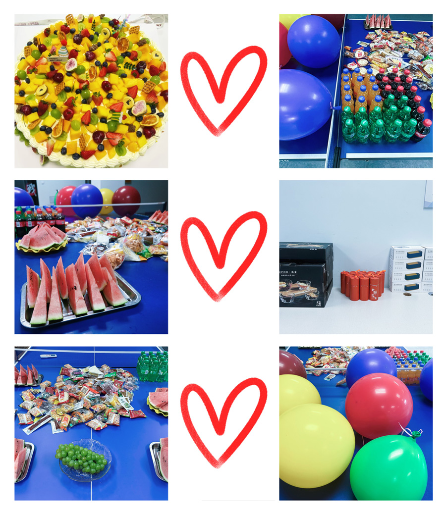 踏入活動(dòng)現(xiàn)場,精心布置的空間瞬間讓人感受到濃郁的溫馨氛圍。長桌變身「快樂補(bǔ)給站」,琳瑯滿目的美食、沁爽的飲品與新鮮的水果有序擺放,宛如一幅誘人的生活畫卷;中心位置,承載著美好祝愿的生日蛋糕熠熠生輝,儀式感撲面而來。不僅滿足了員工的味蕾,更傳遞出企業(yè)對員工細(xì)致入微的關(guān)懷。