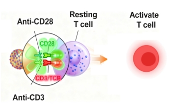 磁珠結(jié)合 | 磁珠與T細(xì)胞表面的CD3、CD28分子結(jié)合后,形成“免疫突觸”樣結(jié)構(gòu),通過多價(jià)交聯(lián)誘導(dǎo)TCR簇集,模擬天然抗原呈遞細(xì)胞(APC)與T細(xì)胞的相互作用。 |