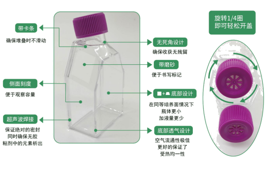 - 向上傾斜的頸部設(shè)計(jì),更加易于移液管或細(xì)胞刮/鏟的進(jìn)入