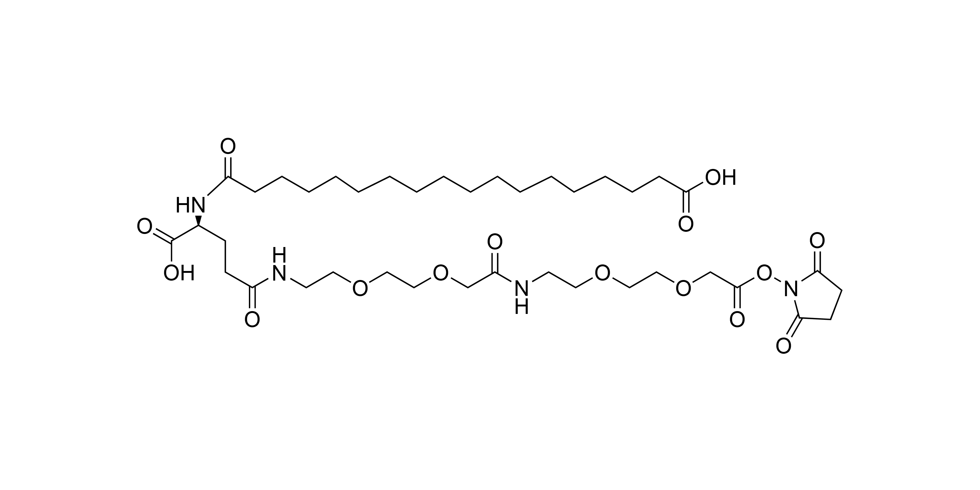 - 別名:1169630-40-3,18-[[((1S)-1-羧基-4-[2-[2-[2-[2-[2-[2-[2,5-二氧雜吡咯烷-1-基)氧]-2-氧-乙氧基]乙氧基]乙氨基]-2-氧代乙氧基]乙氧基]乙氨基]-4-氧代丁基]氨基]-18-氧代十八烷酸;十八烷二酸-谷氨酸-AEEA-AEEA-OSU;索瑪魯肽側(cè)鏈-OSU裂解體