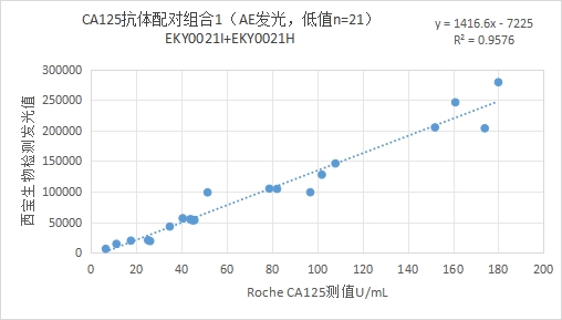 抗體配對組合1:CA125抗體(貨號:EKY0021I)包被羧基磁珠+CA125抗體(貨號:EKY0021H)標(biāo)記吖啶酯;