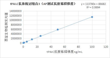組合3:Anti tPAI.C antibody(貨號:EKY1204C)包被羧基磁珠+Anti tPAI.C antibody(貨號:EKY1205C)標(biāo)記堿性磷酸酶;